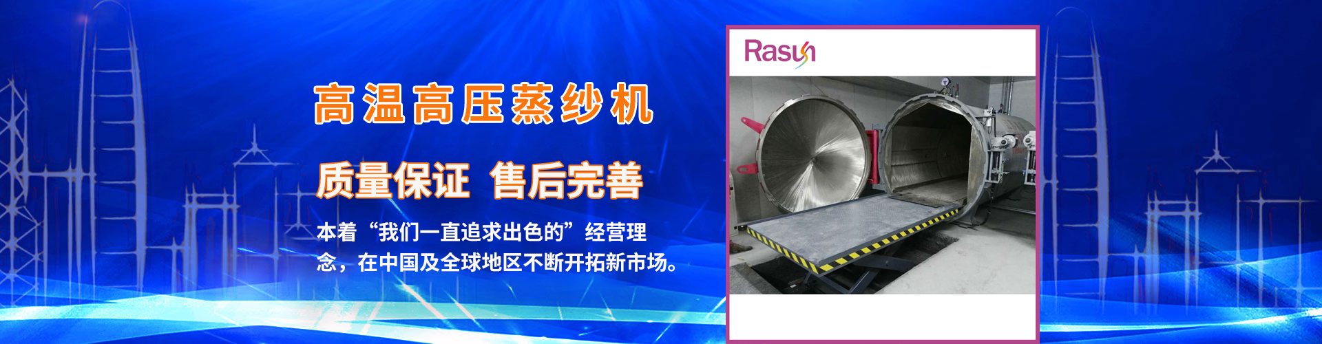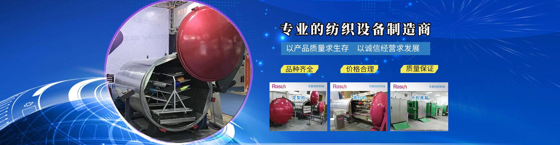 江蘇日新紡織科技有限公司是一家集科研、開發(fā)、生產(chǎn)、銷售、服務(wù)為一體專業(yè)設(shè)計制造蒸紗機,蒸紗鍋,蒸箱,定型機,襪子定型機,紗線定型機的的廠家,蒸紗機生產(chǎn)設(shè)備精良,蒸紗鍋設(shè)計工藝 ,蒸箱檢測手段齊全,紗線定型機技術(shù)雄厚,高品質(zhì)的蒸箱,蒸紗鍋,蒸紗機,紗線定型機產(chǎn)品,在國內(nèi)外享有盛譽。公司坐落于江蘇省金湖縣建設(shè)西路413號,處于南京、揚州、淮安一小時都市經(jīng)濟圈。公司本著“誠信之本”的經(jīng)營理念,在中國及全球地區(qū)不斷開拓新市場,熱誠與社會各界有識之士合作,構(gòu)成一個良好的營銷體系。為您提供專業(yè)的一條龍服務(wù)。愿江蘇日新人能感染您,推動您,走入永遠(yuǎn)屬于我們的天空中去。 + MORE